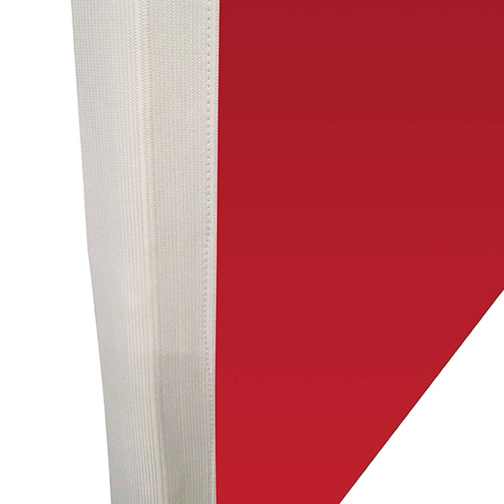 Die Fahne besteht aus 110 g/m² Fahnenstoff mit B1 Zertifizierung bei der das Besatzband als Gummiband in schwarz, weiß oder als bedruckter Stoffsaum erhältlich ist. Die Fahne ist 4/0-farbig, einseitig bedruckbar und kann individuell bedruckt werden.
