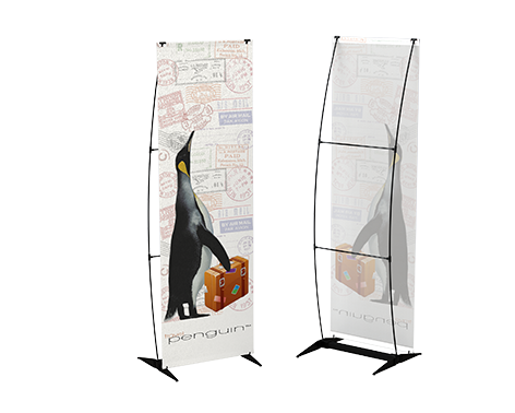Das Display-System TRAVEL penguin von City Medien 24 in Wiesbaden ist extrem stabil und durch sein geringes Gewicht optimal für Geschäftsreisen geeignet. Hohe Flexibilität durch wechselbare Grafikpaneele.