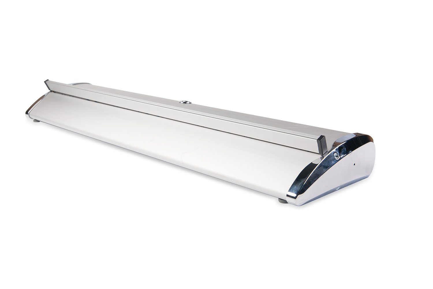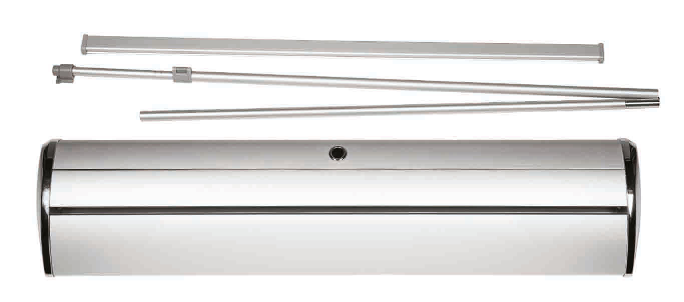 Mit dem Roll-Up Banner von City Medien 24 in Wiesbaden erhalten Sie ein Banner aus der Standard-Reihe. Dieser ist Silber eloxiert und kommt mit einer Klemmschiene sowie verchromte Endkappen daher. Die beiden verchromten Endkappen stechen bei diesem System besonders hervor und verleihen Ihnen einen exclusiven Auftritt. Auch für Messen, Events, Ausstellungen, Werbeaktionen und Ähnliches eignet der Roll-Up Banner sich ideal, denn er kann einfach und bequem in der mitgelieferten Transporttasche transportiert werden.