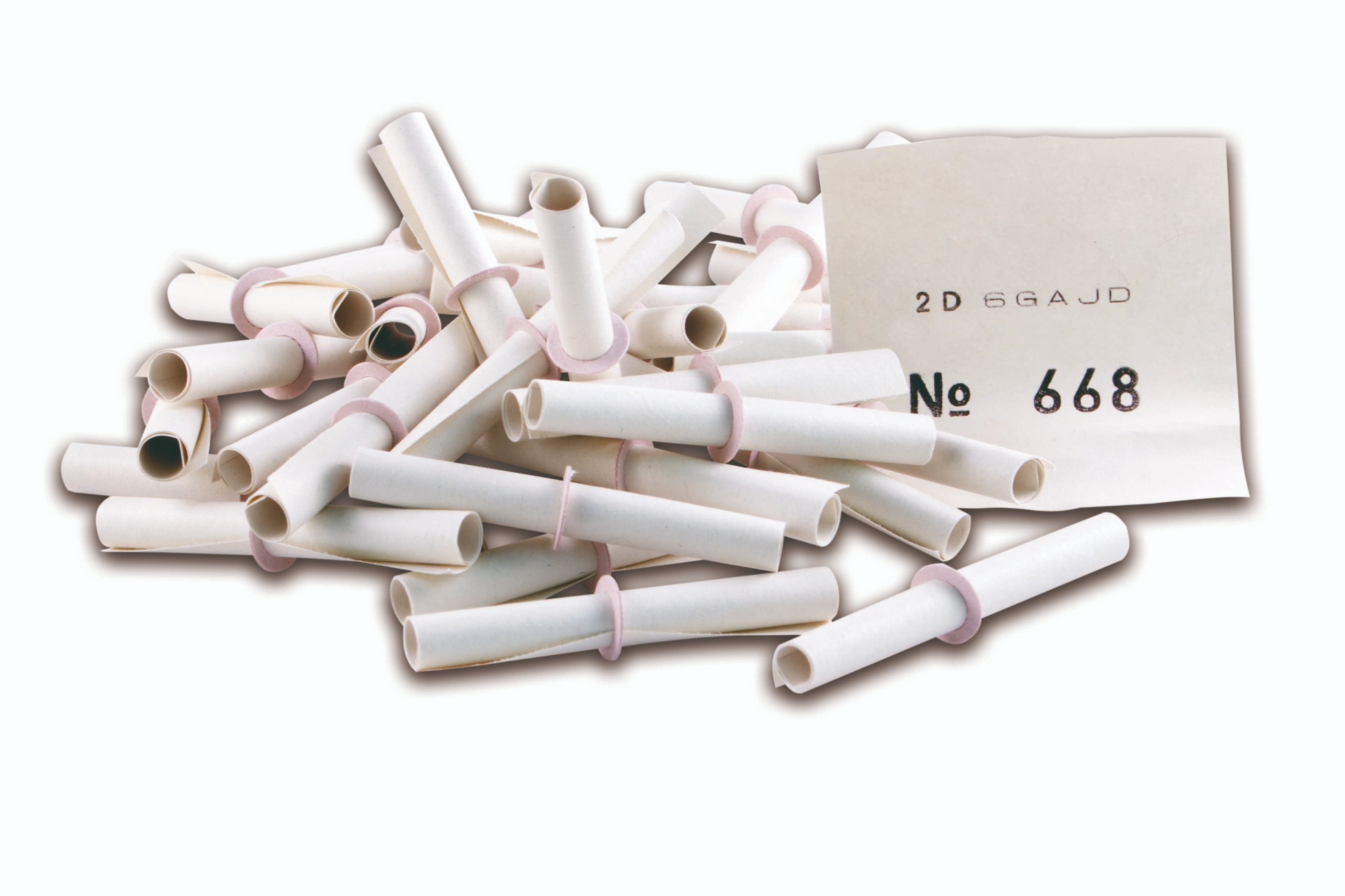 Schon fast 100 Jahre alt, aber noch immer Bestseller - die Röllchenlose von City Medien 24 in Wiesbaden. Das liegt sicher an ihrer Einfachheit, am Rascheln in der Losbox und an der Spannung beim Öffnen der Lose.