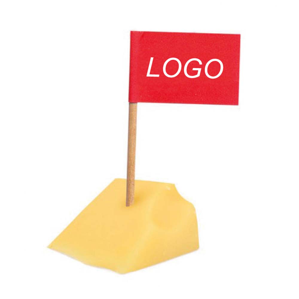 Standard Zahnstocher Fähnchen als Käsepicker, Minifähnchen, Kostprobenpicker oder Portionsfähnchen. Produktion ab 100 Zahnstocher-Fähnchen im 4-farbigen Digitaldruck. Größere Auflagen der Zahnstocher Fähnchen im Offsetdruck möglich.