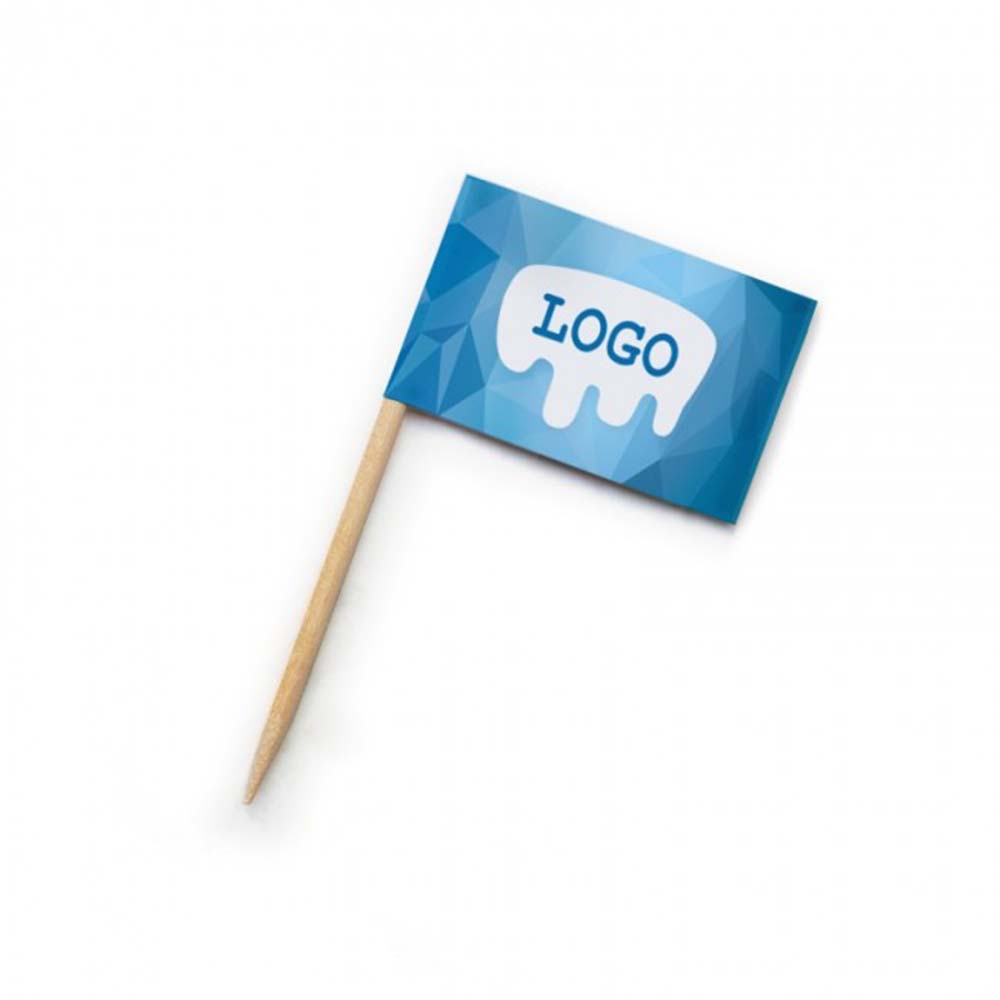 Zahnstocher mit Fähnchen | ca. 7 cm | beidseitig bedruckt von City Medien 24 aus Wiesbaden mit Ihrer Werbung oder Ihrem Logo bedruckt.